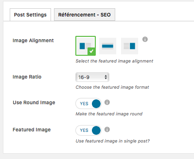 5. En dessous dans la section «post settings» cocher la première proposition de «image alignment», avec l'image à gauche