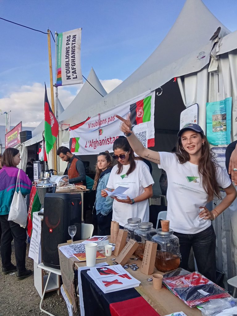 Salarié.e.s et bénévoles ont travaillé pendant trois jours de suite. Au stand « N’oublions pas l’Afghanistan », situé dans le « Village du monde », 3 pôles actifs :