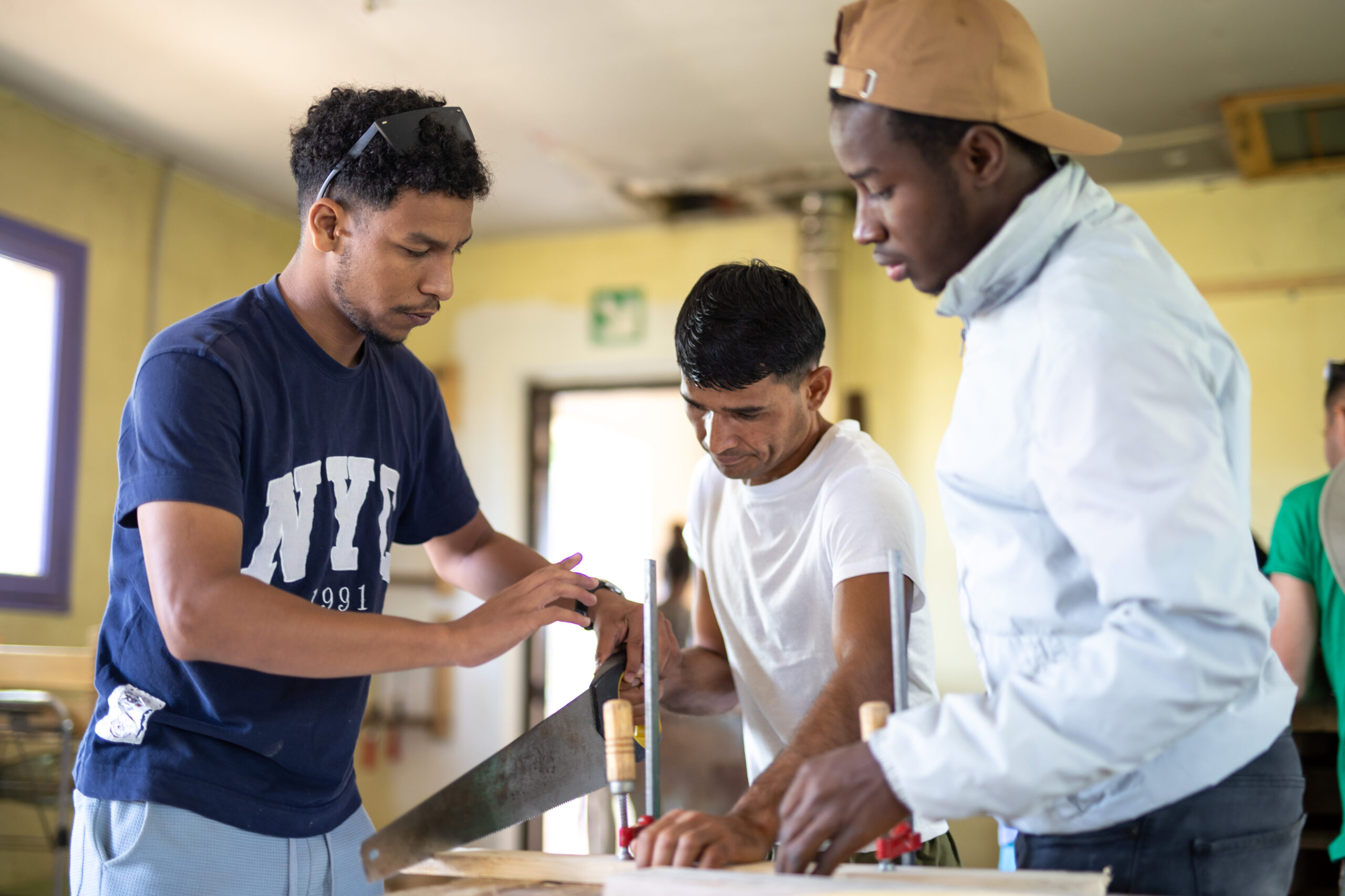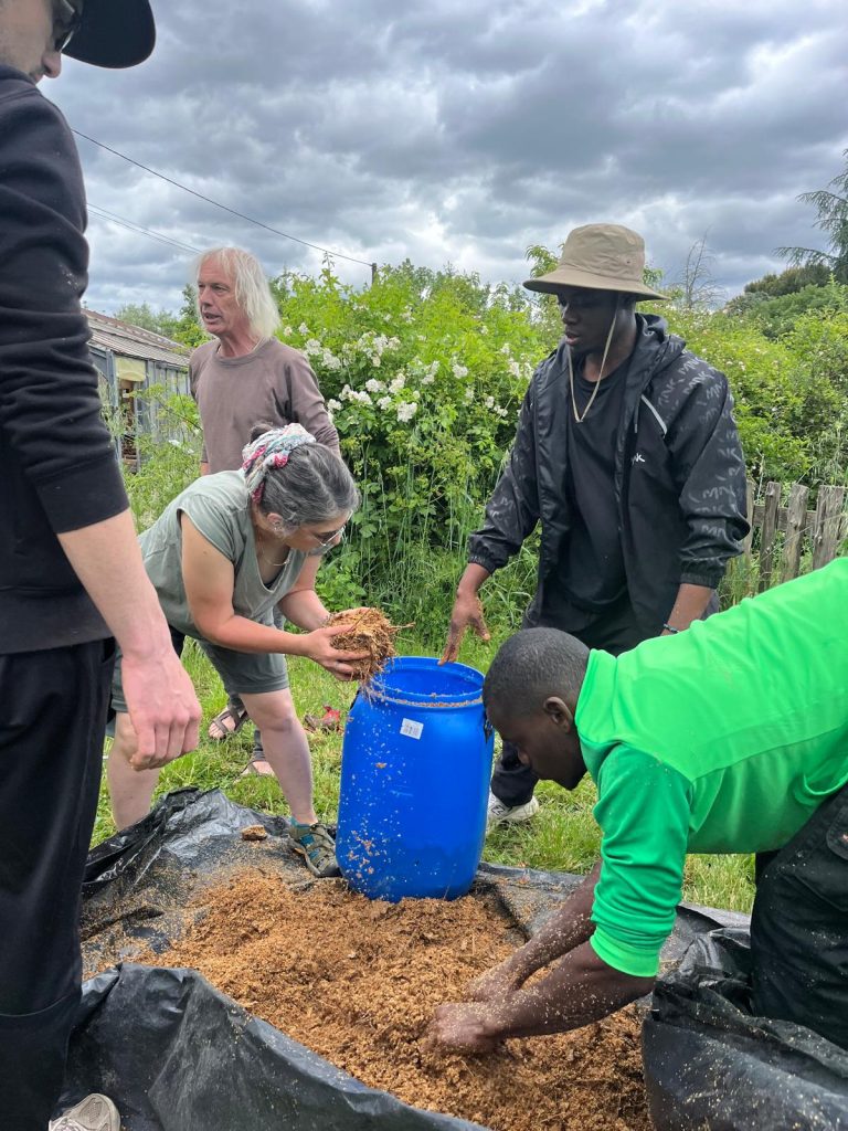 Grâce aux Écoles de la Transition Écologique (ETRE), qui émanent de l’association 3PA, des ateliers techniques sont organisés autour de la menuiserie, du jardinage ou encore de l’éco-construction. Les professionnel·les encadrant ces ateliers mobilisent une pédagogie du geste, où le corps remplace souvent les mots. La répétition, le mimétisme, l’observation, permettent aux jeunes de s’initier à des savoir-faire concrets, dans un langage universel où chacun·e peut apprendre, quel que soit son niveau de langue ou son parcours scolaire.